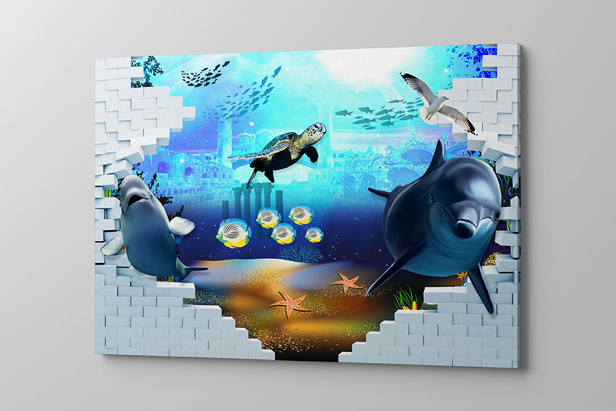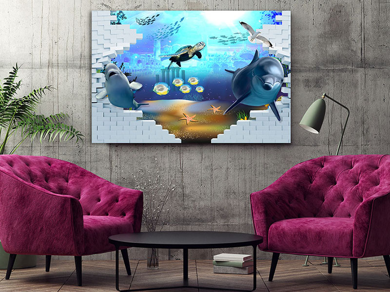 Obraz na płótnie delfiny i żółwie w morskiej głębinie