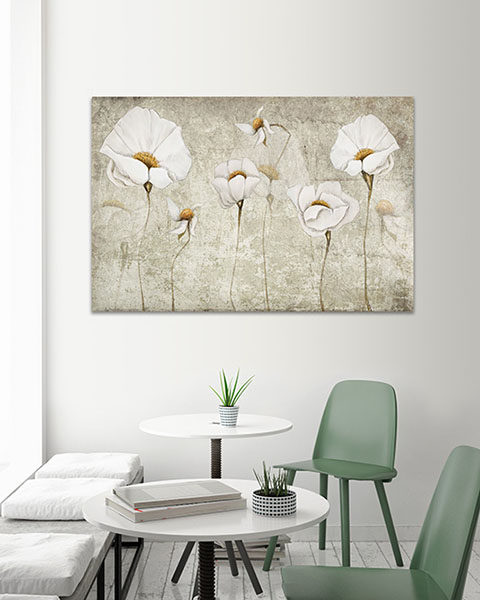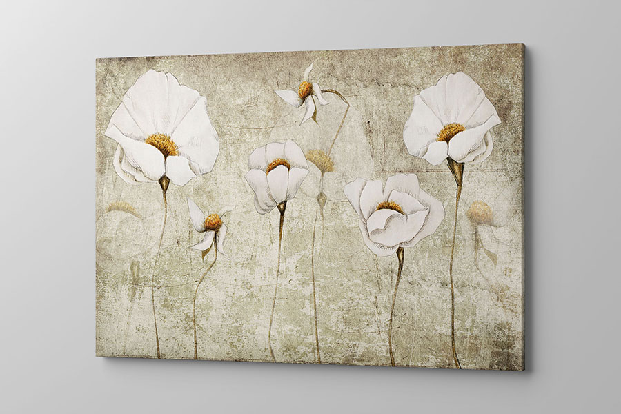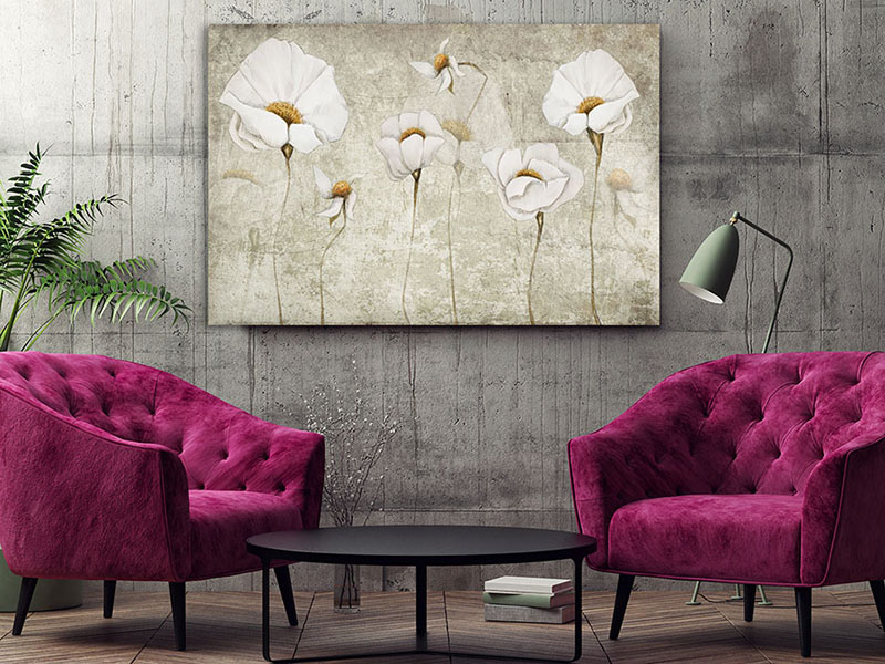 Obraz na płótnie subtelne białe kwiaty na beżowym tle