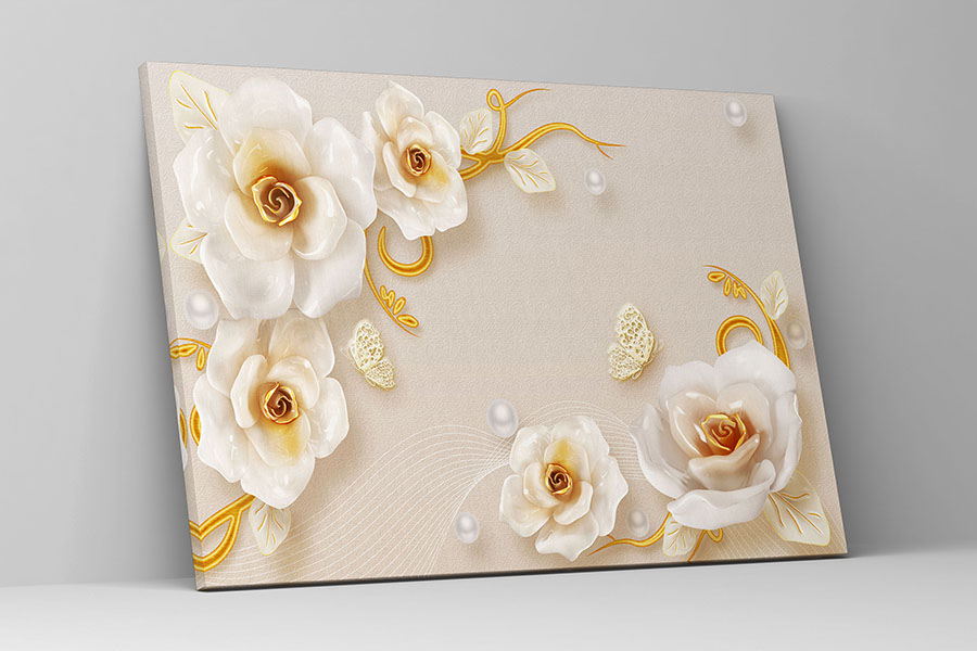 Obraz na płótnie białe złote kwiaty na beżowym tle