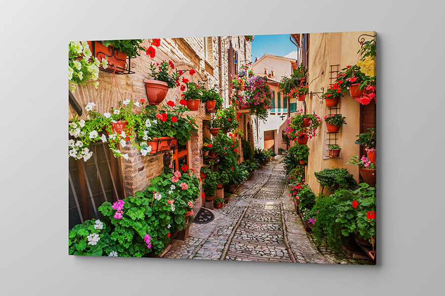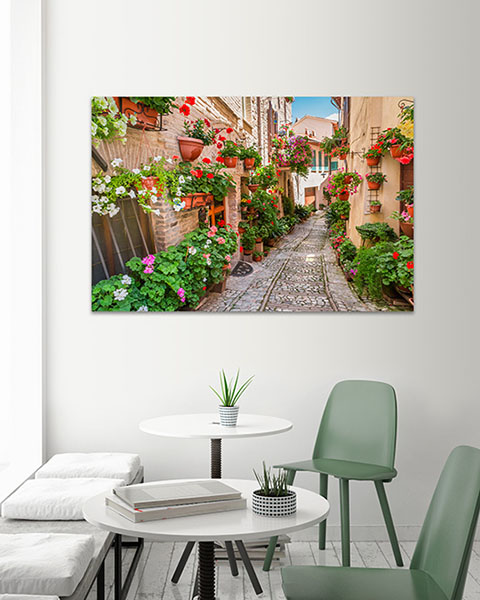 Obraz na płótnie kolorowa pełna kwiatów urokliwa uliczka