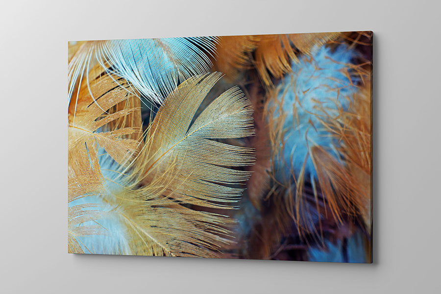 Obraz na płótnie niebiesko złote duże pióra