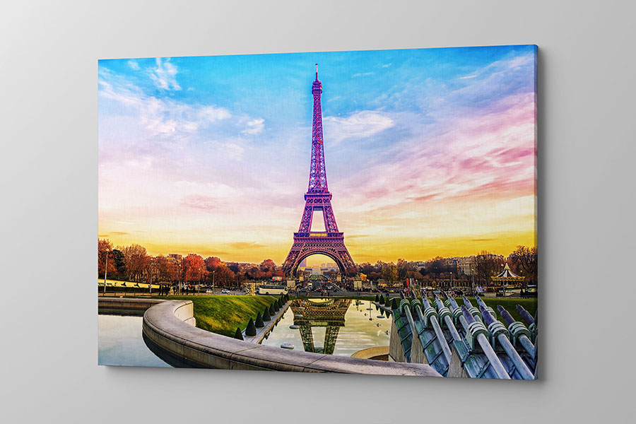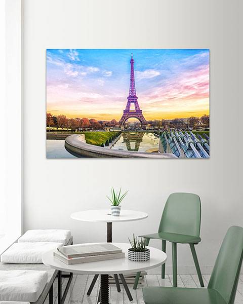 Obraz na płótnie wieża Eiffla a w tle kolorowe niebo