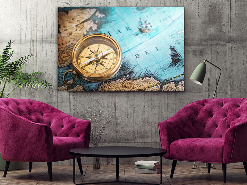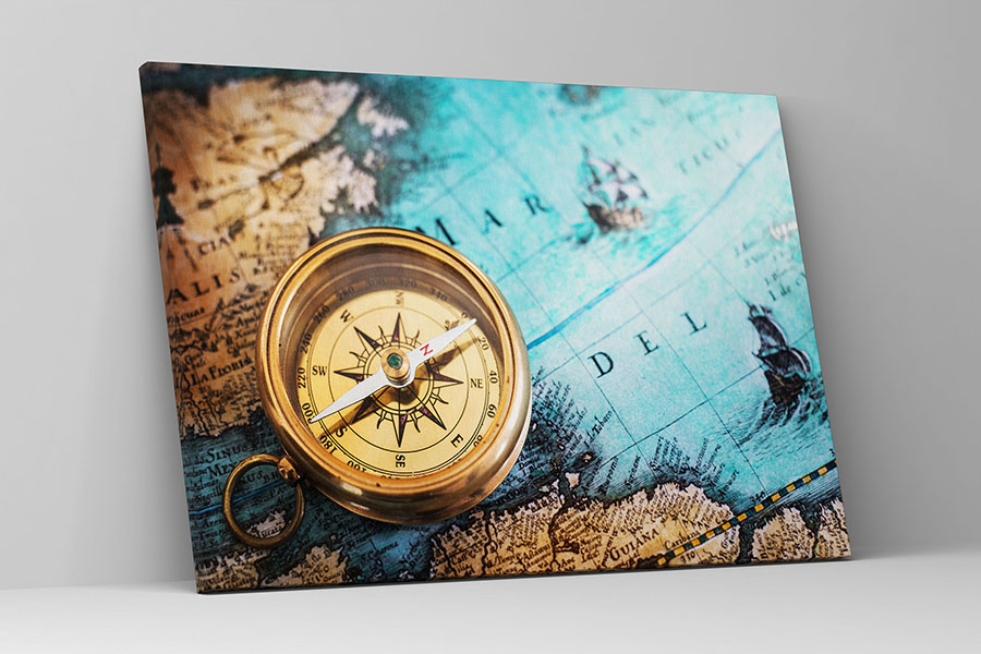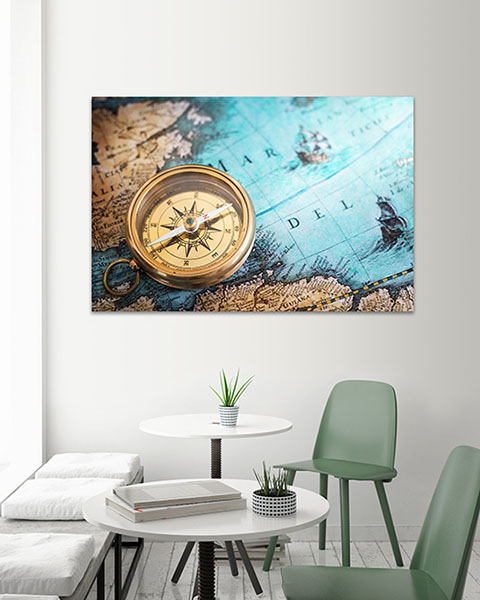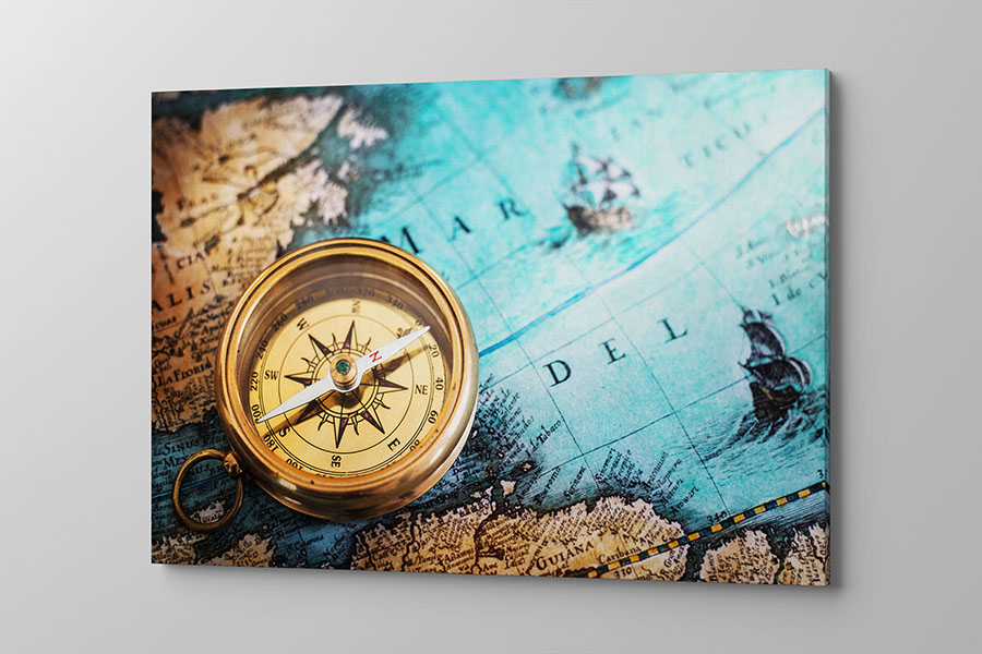Obraz na płótnie niebiesko brązowa mapa z kompasem